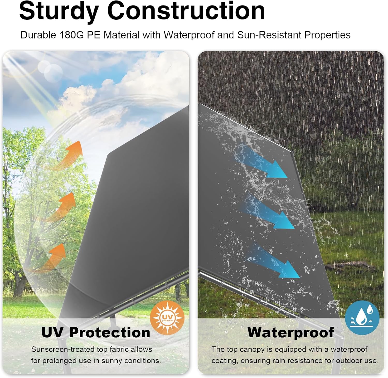 • 【Easy to Install】Our canopy comes with grommet holes for tie-down and Bungee cords are inlcuded to tightly secure the canopy to the frame.