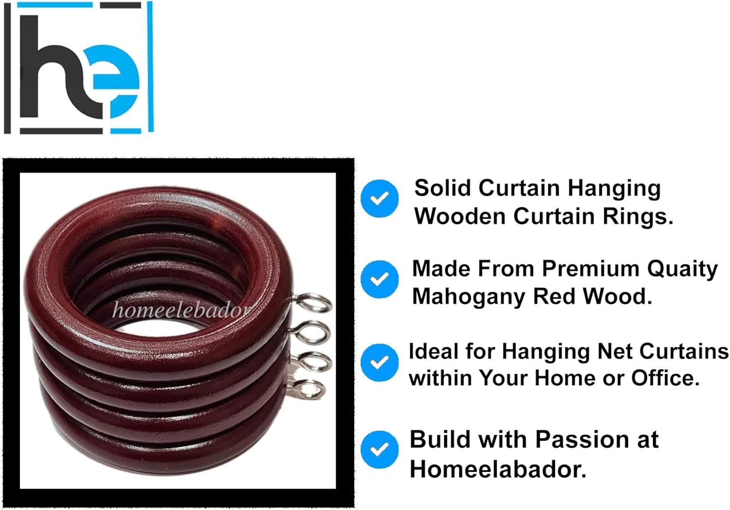 • PACKAGE INCLUDE – Pack of 12 Mahogany Red wooden curtain hooks with screws eye for 42mm curtain poles. enough to meet your requirements.