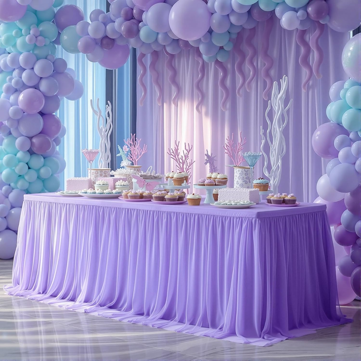 | Style | pink ruffle table cloth |