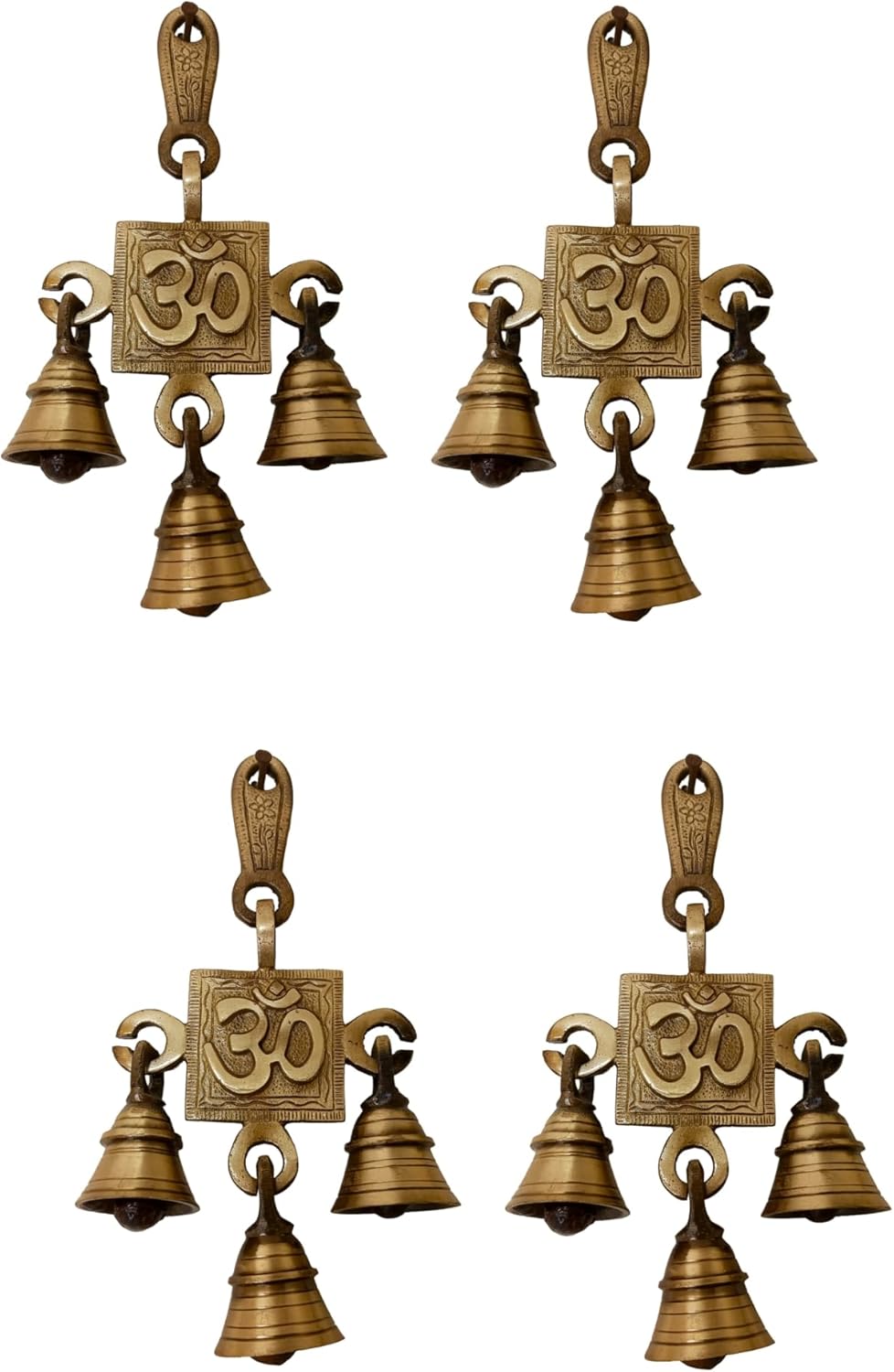 Transform your living space with this exquisite OM/AUM brass wall hanging, featuring three harmonious bells that create a serene atmosphere. This traditional Indian decor piece combines spiritual symbolism with artistic craftsmanship, making it perfect for meditation spaces, entryways, or sacred corners of your home. The handcrafted brass bells produce gentle, soothing chimes when touched by a breeze, while the sacred OM symbol adds a touch of spiritual elegance. Each piece showcases intricate metalwork that reflects time-honored Indian artistry. Whether used as temple bells, door decor, or as part of your pooja accessories, this versatile decoration brings both beauty and cultural significance to any room. The durable brass construction ensures lasting quality, while its traditional design complements both contemporary and classic interior styles. Add this meaningful piece to your home decor collection or give it as a thoughtful gift for special occasions.
